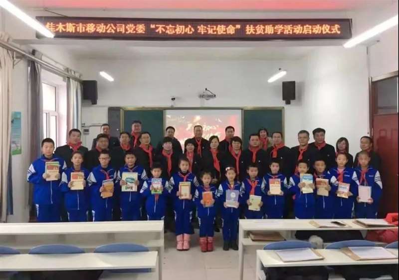 为贯彻落实“不忘初心、牢记使命”主题教育,真正改善贫困学生的学习条件和生活水平提供实际帮助,2019年12月13日,中国移动佳木斯分公司党委的14个党支部以为沿江中心校的16名贫困学生捐赠爱心图书为起点,从12月25日至2020年1月15日对贫困学生进行了慰问走访,为学生带去了价值三万余元的生活必需品以及现金,为孩子带去了对未来的期望。