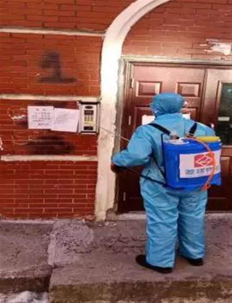 哈尔滨菱建物业管理有限公司佳木斯分公司益海花园小区物业管理中心和宜福九郡物业管理中心,在保证疫情防控物业供给自足的情况下,向区政府主动请战,调派汽车两辆,75%酒精150公斤,组织公司员工6人,先后到红旗街道、友谊街道,完成68栋弃管楼的防疫消毒工作。