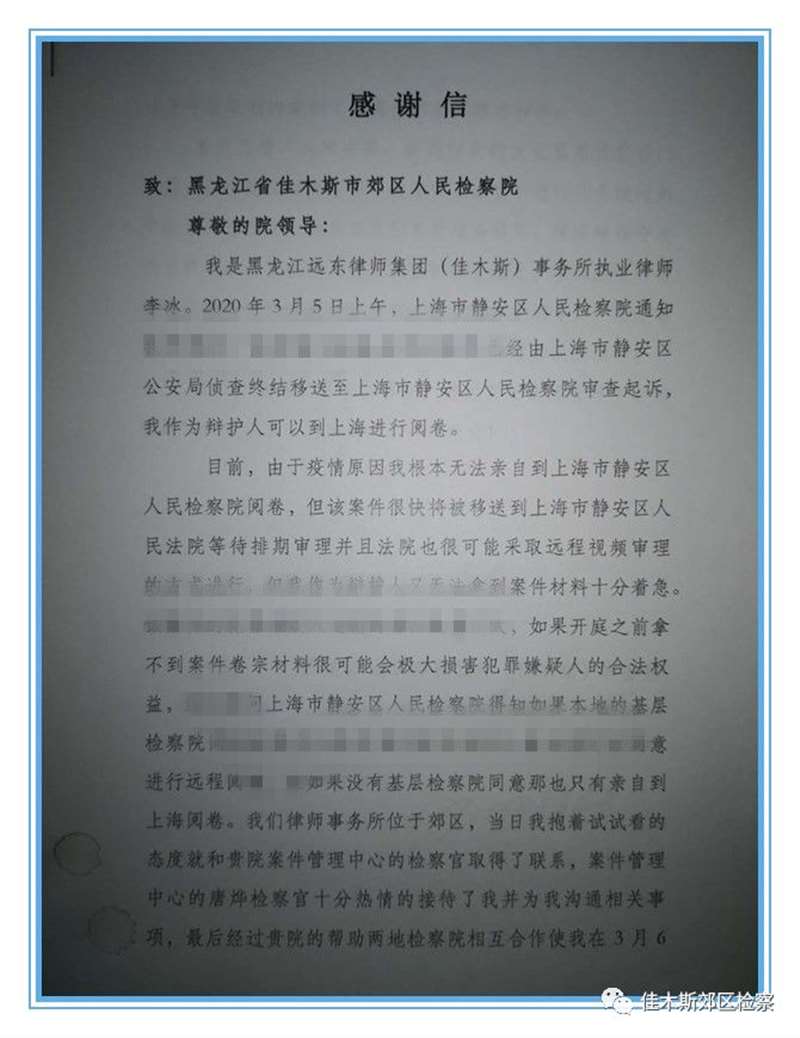 “相距2600多公里,案件已移送起诉,涉及重大刑事犯罪,需要快速办理……” 佳木斯远东律师事务所的李律师遇到了个难题。手头办理的一起刑事案件,需要马上到上海市静安区检察院阅卷,按照疫情防控要求,往返两地隔离将近一个月的时间,这可怎么办?