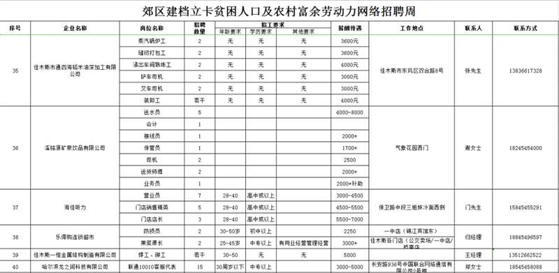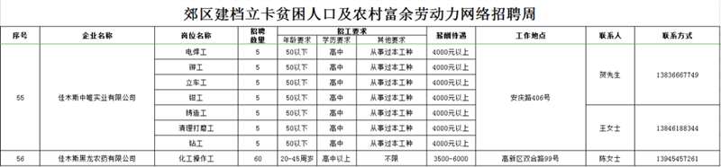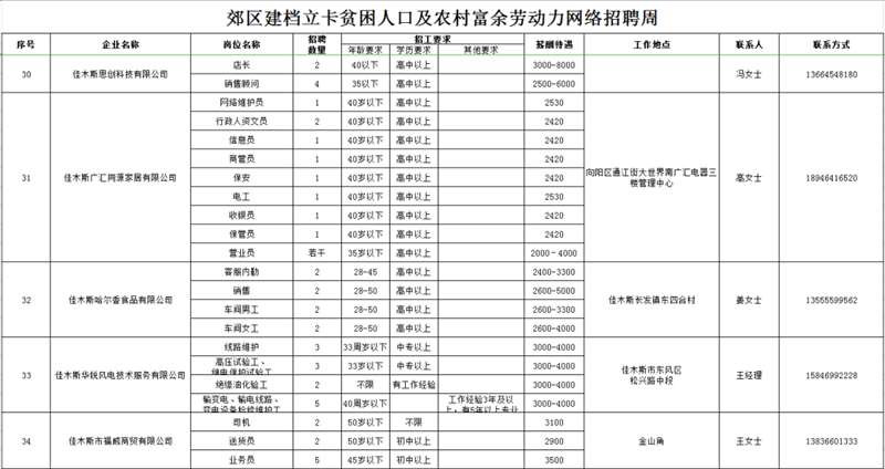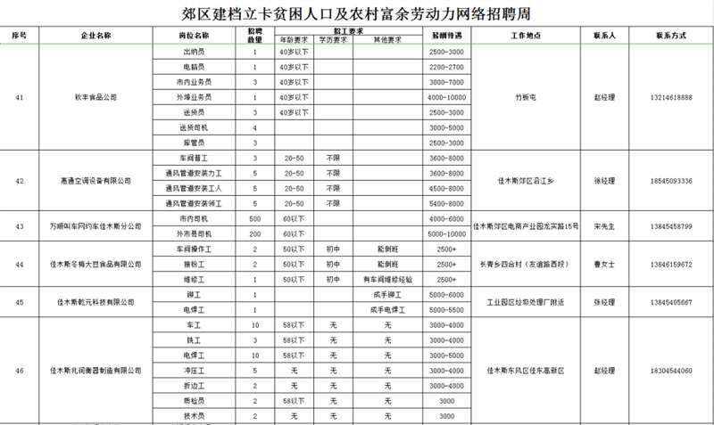 招 聘 对 象:以郊区建档立卡贫困人口及农村常住人口为主,同时欢迎佳木斯各城区及外县(市)有就业务工愿望的人员参加招聘。