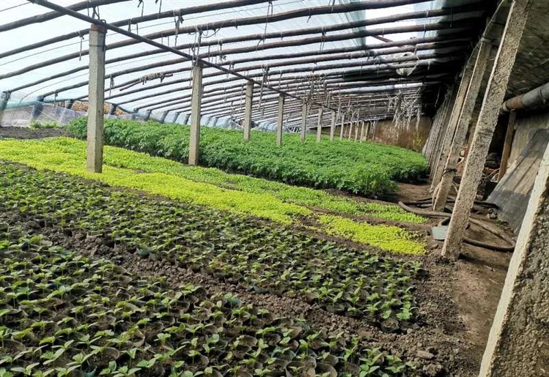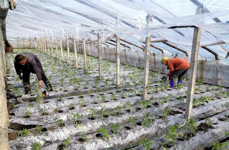 长青乡万兴村村民刘玉伦正在自家温室大棚里忙活。大棚内黄瓜、西红柿的幼苗郁郁葱葱,长势喜人。村民戚金友和工人们也正抢抓农时,在田间起垄、盖膜、移栽育苗、施肥管护,翠绿的蔬菜整齐地排列着,大棚里一派生机盎然。