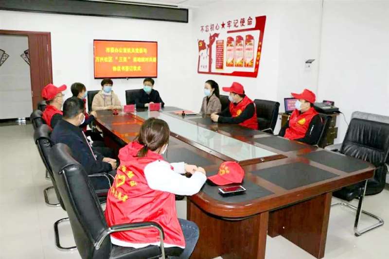 为加强基层党组织职能发挥,扎实开展在职党员进社区“双报到、双服务、双评议”活动,近日,市委办公室机关委员会与友谊街道办万兴社区签订了《党组织和在职党员“双报到、双服务、双评议”活动结对共建协议书》,共同制定了党建项目计划清单。