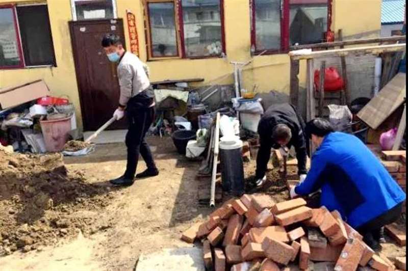 近日,沿江中心校扶贫干部在入户走访过程中,发现黑通村贫困户崔洪儒家存在入户门前因施工导致残土堆积,储物棚栏拆除,取暖煤等杂物无处堆放等问题。经现场研究,沿江中心校决定立即为贫困户建棚栏。6名扶贫干部各显身手、各尽所能,运砖、运粘土、砌墙,棚栏“微工程”说干就干。经过默契配合、分工合作,当日就完成了这项工作。