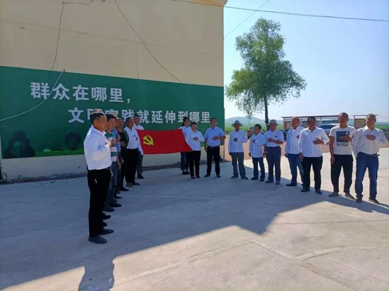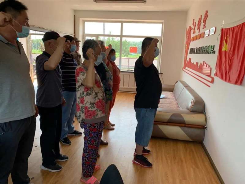 【西格木镇党委】组织民胜村党员在党旗下重温入党誓词、唱国歌。