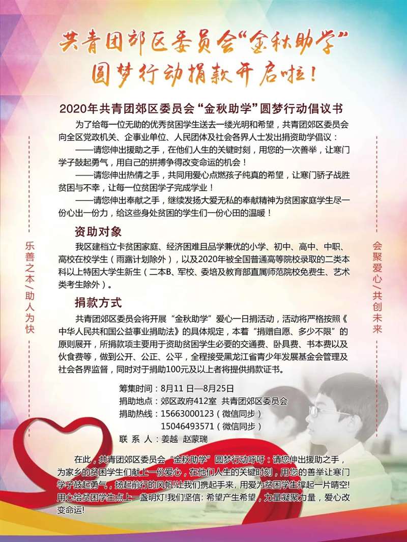 2020年共青团郊区委员会“金秋助学”圆梦行动倡议书