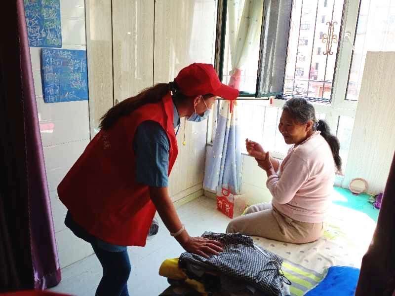 8月26日,巾帼志愿服务队7名志愿者到辖区贫困户罗某家中进行探望,罗某母亲与儿子均患有精神残疾,生活十分困难,志愿者为他们送去衣物等生活用品。同时还关切询问他们的生活现状,了解他们在生活中遇到的困难和问题,并鼓励他们要积极面对生活,战胜生活中的困难,并告诉他们如有什么困难可以及时寻求社区帮助,同时巾帼志愿服务队的志愿者们表示随时提供志愿服务。