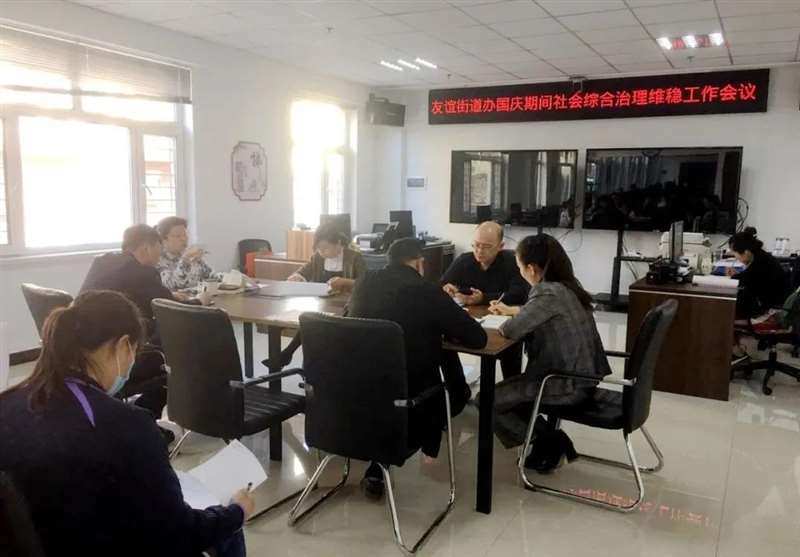 近日,友谊街道组织召开国庆期间社会综合治理维稳工作会议,街道班子成员及8个社区主任参加会议。