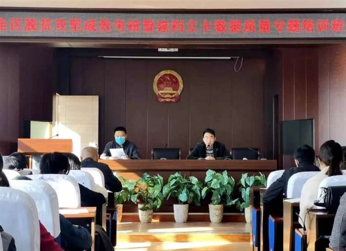 区扶贫办主任刘君涛主持开班仪式,区扶贫办副主任王湛博、区扶贫开发数据中心负责人白宇超分别就脱贫攻坚成效考核、建档立卡数据质量评估两项重点工作进行了业务培训。