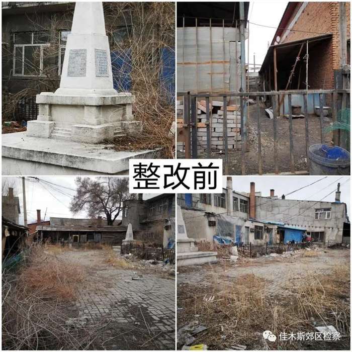 排查中,检察干警发现位于郊区莲江口镇的苏联红军烈士纪念碑周围布满白色垃圾,枯枝、砖头等成为了纪念碑的“点缀物”,周边居民私建仓房、柴棚已把行人通道全部堵死,严重损毁了英烈荣誉和尊严。检察干警运用无人机等现代手段调查取证后,督促莲江口镇相关部门依法履行监管职责,加强烈士墓园的修缮、维护和管理工作,切实维护英烈荣誉与尊严,并给瞻仰者以便利的通道。