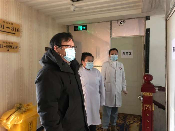 在凯欣宾馆集中隔离点,冯甲伟查看了隔离点的基础条件、防疫措施落实等方面,并与医护人员深入交流,询问隔离点人数、供暖、消杀通风、隔离人员饮食等情况。他强调,要完善隔离点设施配备,健全完善隔离机制,加强隔离点的安全防护措施。工作人员要克服困难,严格落实疫情防控各项措施,做好自身防护。要做好集中隔离人员的管控、服务和后勤保障工作,加派公安干警24小时进行执勤,每天按标准进行消杀通风,落实落细落靠隔离点疫情防控各项工作。
