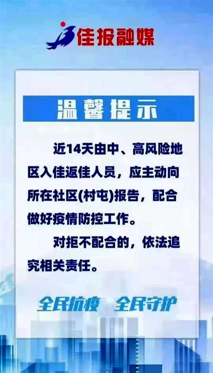 请您密切关注国内中、高风险地区的动态变化和病例的行动轨迹,如非必要,不要前往中高风险地区。确需前往,请务必做好个人防护,抵返我省后要主动向目的地相关部门或社区报告,及时配合进行核酸检测和集中隔离等工作;尽量减少不必要的聚会、聚餐,减少到人员密集、空气流动性差的公共场所活动;鼓励员工在工作地休假;乘坐铁路、航空、公路客运等公共交通工具时全程佩戴口罩,注意保持手部卫生。