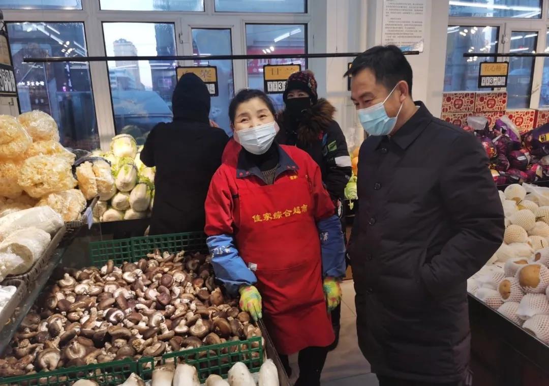 徐永刚要求,市场、商务等相关部门要进一步加强市场监管,严厉打击借机哄抬物价、囤积居奇等违法行为,切实稳定物价、稳定市场。要积极组织货源,加强统筹调度,引导督促企业承担社会责任,保供应、畅流通、稳价格,全力保障群众生活物资供应。各商超业主要坚持做到疫情防控和市场保供两手抓,强化日常监管,严格落实佩戴口罩、消毒通风、体温监测、扫码登记等各项防控措施,设置专人引导,做好人员分流,防止人员聚集。