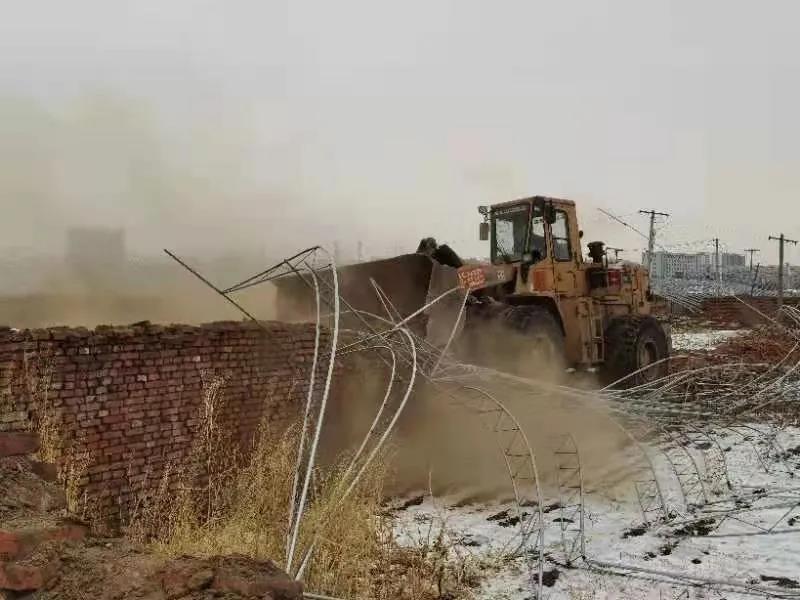 为坚决制止在耕地上建设违法构筑物严重破坏农业生产的行为,近日,郊区长青乡五一村辖区内耕地上120余万平方米违法构筑物被依法拆除。