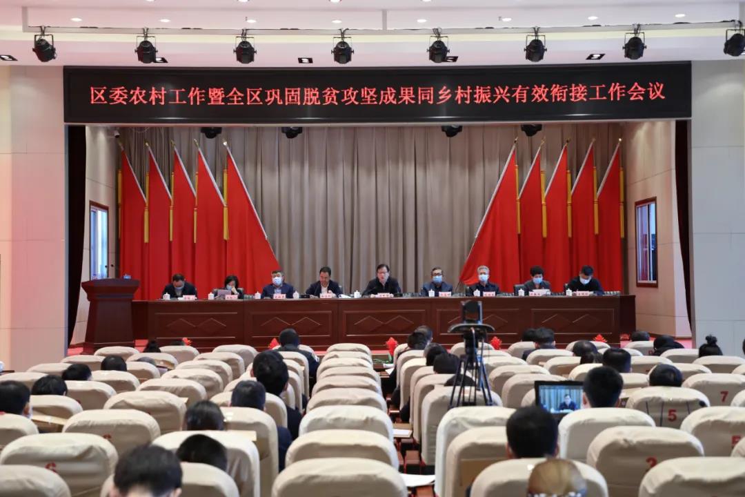 3月12日下午,区委农村工作暨全区巩固拓展脱贫攻坚成果同乡村振兴有效衔接工作会议召开。会议传达了省委和市委农村工作会议、全省和全市巩固拓展脱贫攻坚成果同乡村振兴有效衔接工作会议精神,总结了2020年全区农业农村工作,部署了“十四五”时期全区“三农”工作目标任务及2021年重点工作。区委书记冯甲伟出席会议并讲话。区委副书记、区长徐永刚主持会议。郑昌辉、闵祥寒等区四个班子领导,现职处级领导、各乡镇、街道、区直各部门主要负责同志参加会议。