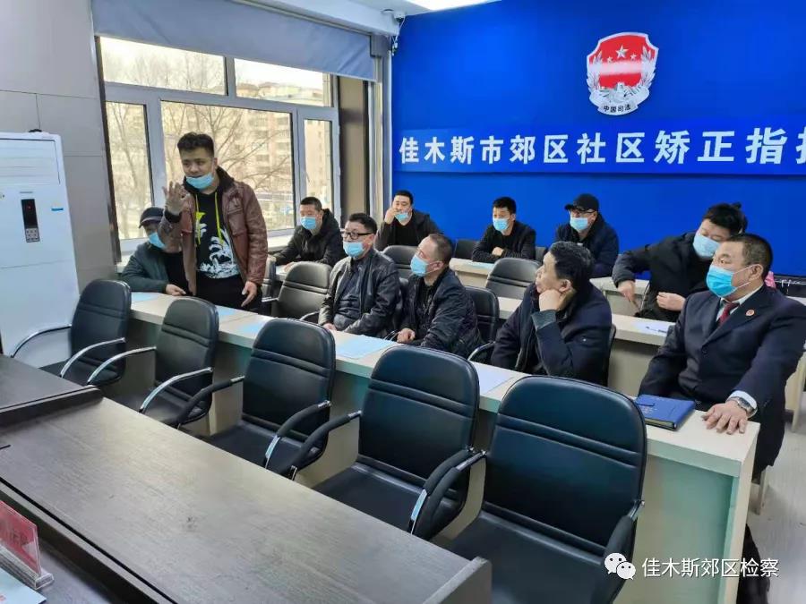 3月29日,郊区人民检察院联合区司法局组织从事车辆运营的社区矫正人员召开帮教座谈会,副检察长李会琪为参会人员详细地讲解了《佳木斯市郊区从事车辆运营社区矫正对象外出请假实施办法(试行)》的相关规定,以社区矫正案例,充分释法说理,通过法治教育和真心帮扶,帮助矫正对象真诚悔过、成功矫正,早日回归社会。