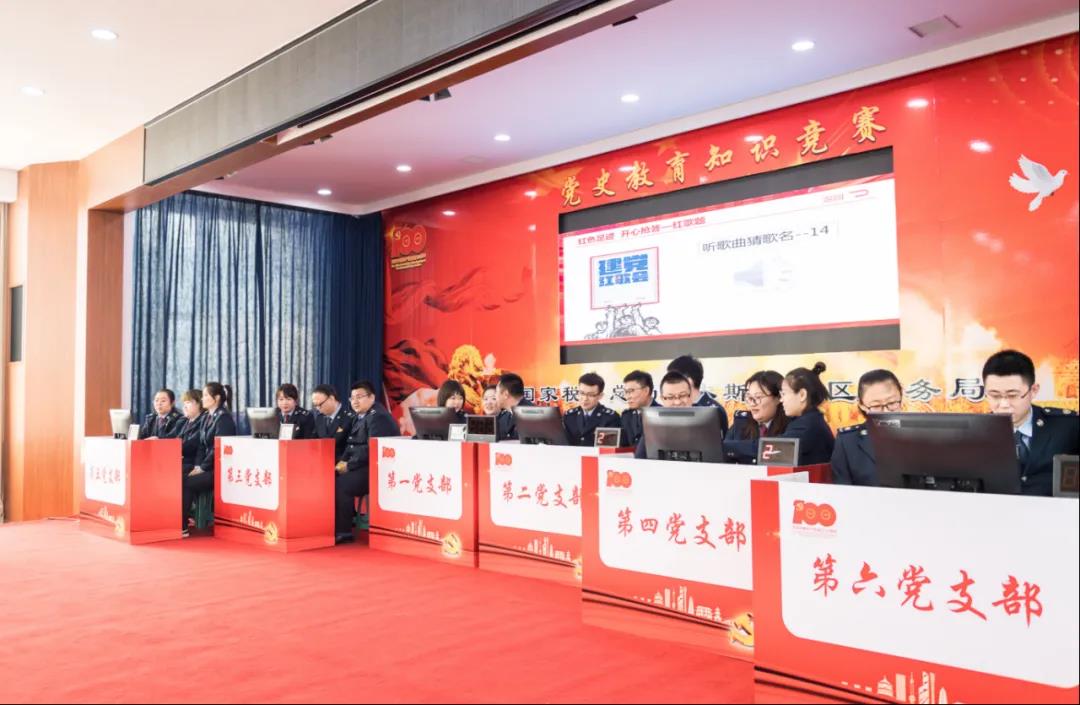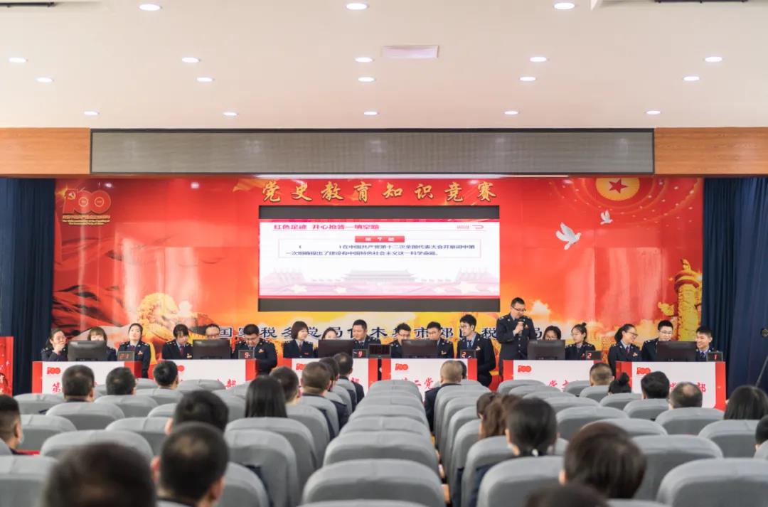 本次党史学习教育知识竞赛由郊区税务局机关党委组织,重点考察郊区税务干部对党史、新中国史、改革开放史、社会主义发展史等内容的学习与理解情况,竞赛分为必答题、抢答题、风险题三个环节,采用记分排名制进行。竞赛现场气氛热烈,6支参赛队伍你追我赶、高潮迭起。经过激烈角逐,产生一、二、三等奖。