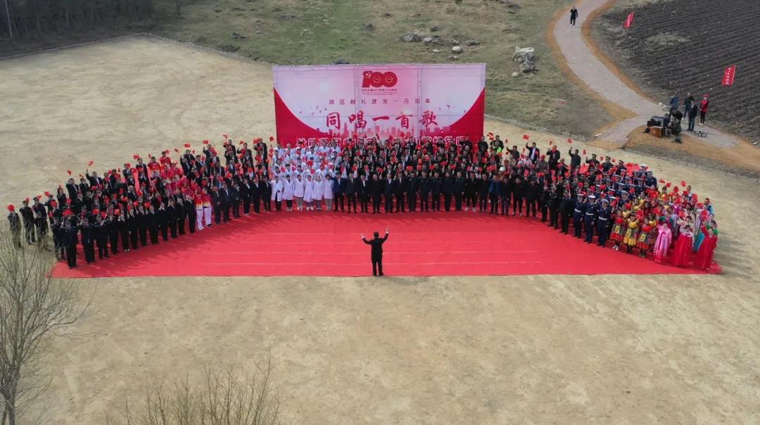 伴随着歌曲《没有共产党就没有新中国》优美的旋律响起,郊区400余名机关干部、教师、农民、工人、政法干警、医护人员、部队官兵、赫哲族和朝鲜族群众等在杜鹃山脚下,展开嘹亮的歌喉、挥舞鲜艳的党旗,用最优美的歌声,唱出对伟大中国共产党的无限热爱,讴歌中国共产党成立100周年来取得的辉煌成就,表达对中国共产党建党百年的美好祝愿和深深的祝福,雄壮的歌声响彻杜鹃山上空,萦绕山间久久回荡。