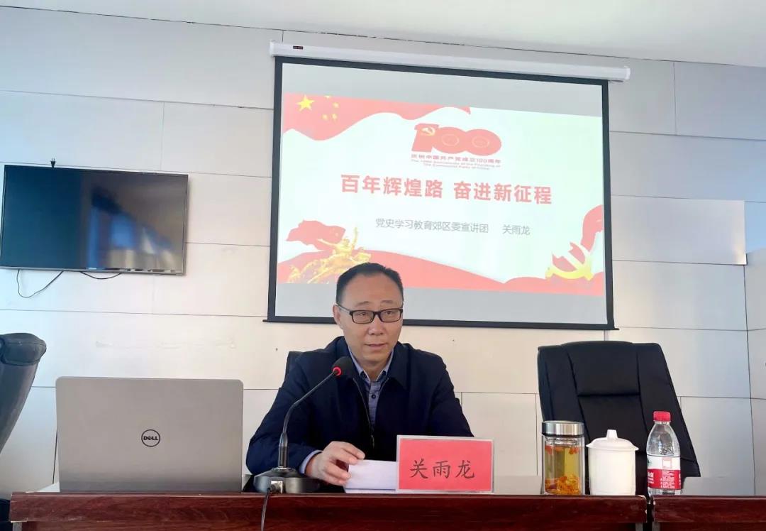 宣讲报告会上,关雨龙以《百年辉煌路奋进新征程》为题,通过生动的事例带领大家深入学习领会习近平总书记关于党的历史的重要论述,充分认识开展党史学习教育的重大意义,分享自己研读党史基本著作的心得,详细阐述了中国共产党百年奋斗的光辉历程和历史性贡献。