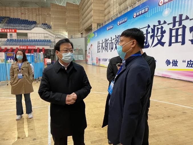 5月12日,区委书记冯甲伟到新冠肺炎疫苗接种现场、嘉裕农牧60万只蛋鸡标准化养殖及屠宰加工项目现场、佳木斯电商产业园调研指导疫苗接种、项目建设和电商产业发展等工作。