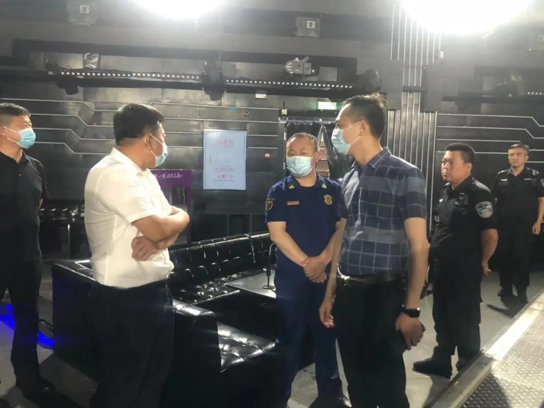为进一步规范娱乐场所经营活动管理,保障辖区内娱乐场所安全生产秩序,严厉惩治娱乐场所存在安全隐患及无证经营等群众反映突出的问题,维护娱乐场所健康发展。6月29日,由区委常委、政府副区长宋鹏程带队,区应急局牵头,联合区文体广电和旅游局、区市场监督管理局、区卫健局、区消防大队、治安大队等部门组成的联合执法队伍采取“四不两直”(即不发通知、不打招呼、不听汇报、不用陪同接待、直奔基层、直插现场)方式对辖区内唱响时代KTV、金旺角KTV、银座KTV等多家娱乐场所进行联合突击检查。