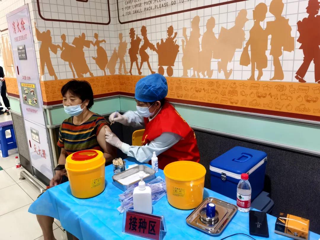 为了加快推进郊区疫苗接种,方便群众进行疫苗接种,加速建立起疫情防控防线,区卫健局、红旗街道办、商务局共同组织,在大润发万新店设立新冠肺炎疫苗临时接种点,使群众在逛超市之余也能进行疫苗接种,使疫苗接种服务“便民利民”,推动疫苗接种工作达到“应接尽接”。
