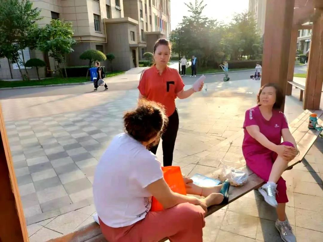 郊区机关事业社会保险经办中心工作人员发动身边亲人、朋友、邻居早上到公园、晚上到社区宣传疫苗接种的必要性和重要性。