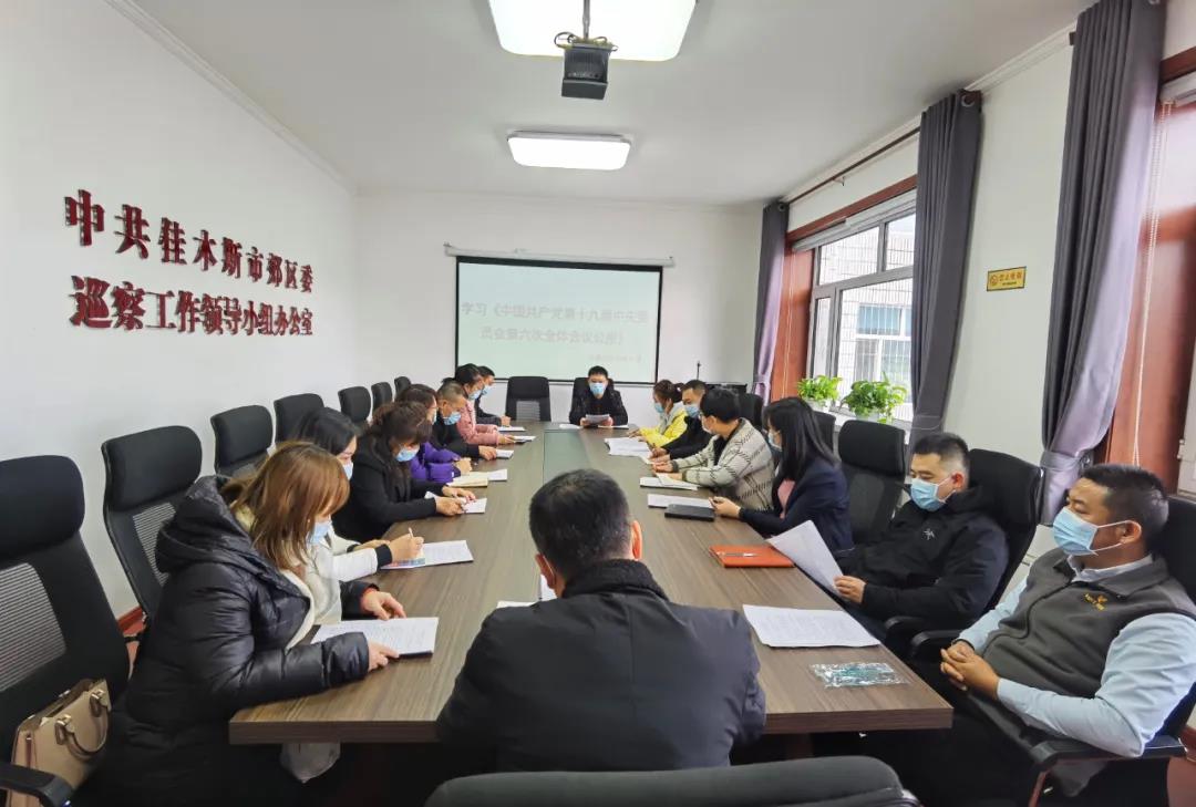11月15日下午,区委巡察办党支部党员大会,专题学习中国共产党第十九届中央委员会第六次全体会议公报。党支部书记王兆中主持会议并领学。