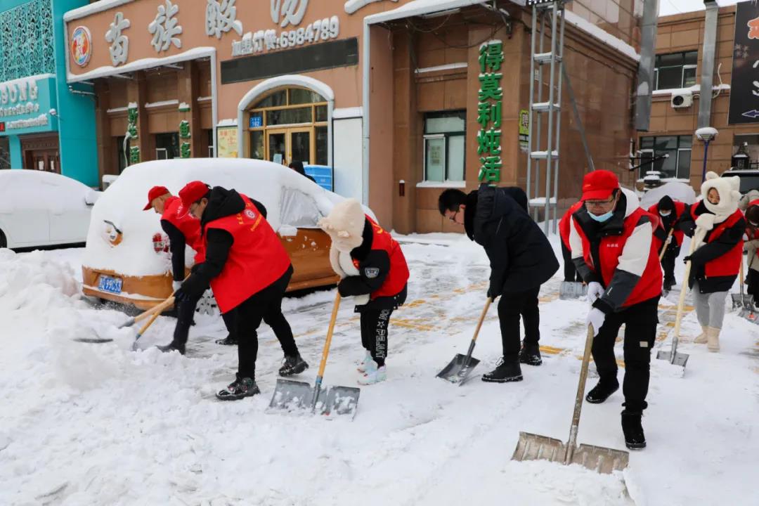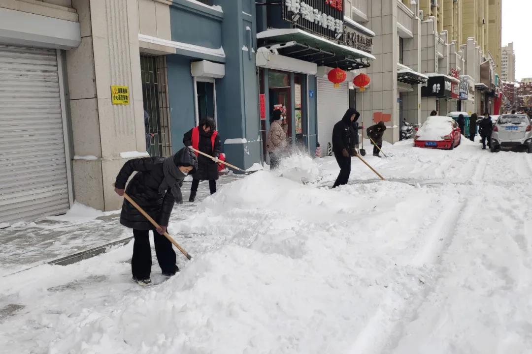 在全区党员干部、志愿者、网格员奋力清雪的同时,郊区全体工商业户也积极响应区委、区政府号召,严格落实门前“三包”制度,积极开展清雪保畅活动,对自家门前的积雪进行了及时的清理,业户们手持铁锹、铁铲,将门前积雪清理成堆,方便机械运输,确保自家门前的道路畅通,为共同拥有一个环境优美、出行便捷、安全的出行环境奉献出自己的一份力量。