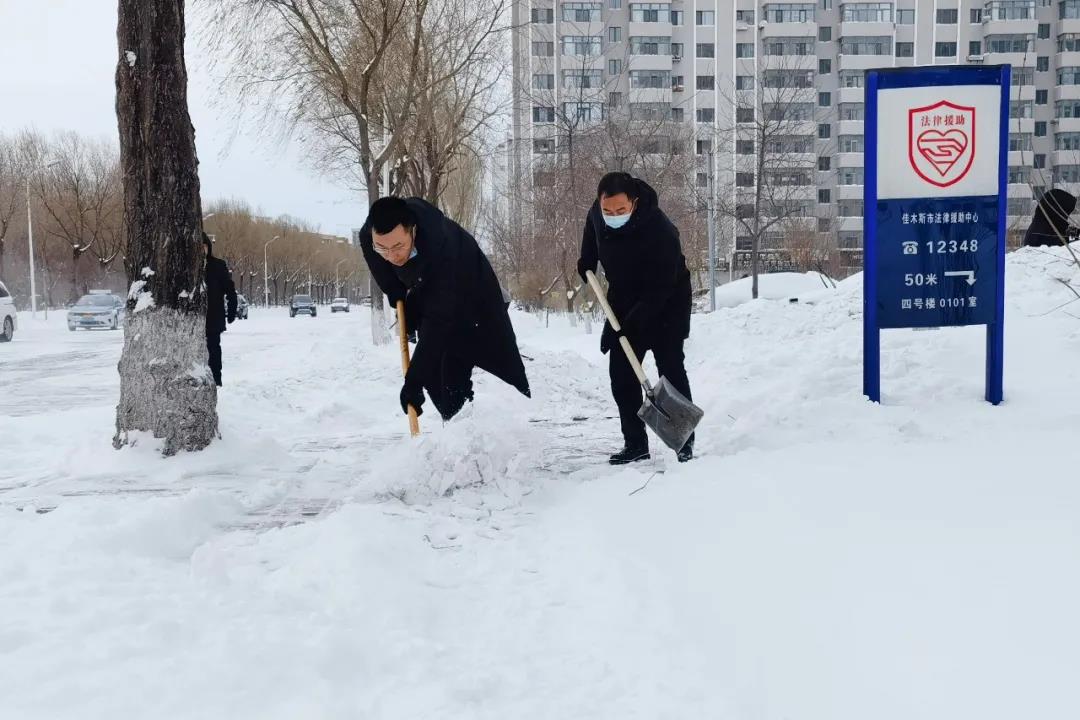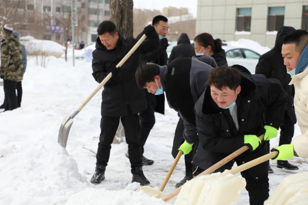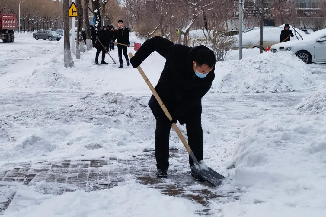 活动中,大家不畏严寒,积极主动、相互配合、齐心协力,挥舞着铁锹和扫帚,你铲我扫,一派热火朝天的景象,一点点地将积雪铲起并集中堆放;看着渐渐成堆的小雪山、畅通的车道和人行道,无积雪的居民楼路面及有序行驶的行车环境,参与扫雪的机关党员干部志愿者脸上红彤彤的、洋溢着开心的笑容,他们在劳动中体会着快乐与收获,在清雪行动实践中感悟初心、践行使命。路过的人们见了连连竖起大拇指,表示感谢,是党员干部志愿者的辛苦付出,给人们出行带来了方便,带来了快乐。