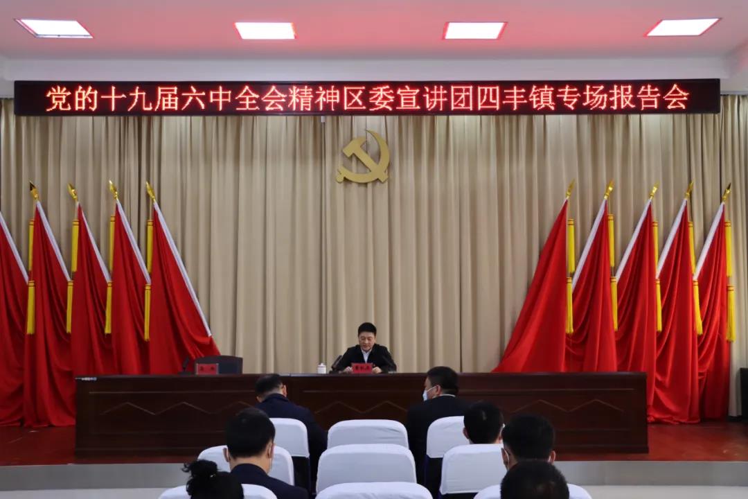 12月16日,区委副书记、政府区长候选人董秋实到四丰镇作党的十九届六中全会精神宣讲报告。四丰镇党政班子成员、各站办所长、各村党组织负责人参加宣讲报告会。