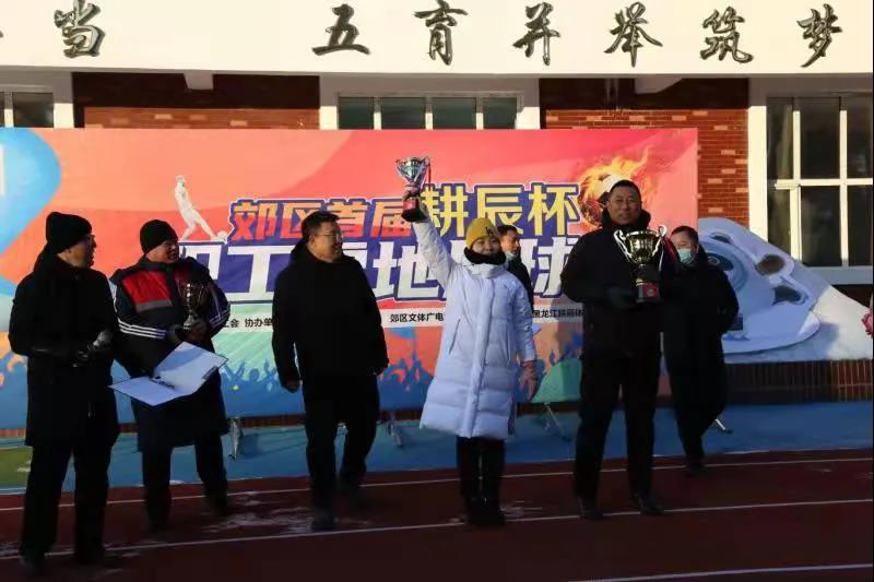 1月14日下午,由区总工会、区直机关工委、区文体广电和旅游局共同举办的以“迎北京冬奥 庆建党百年”为主题的职工五人制雪地足球赛,在区第十五小学收官。区委副书记、政法委书记卢国强参加闭幕式并为获奖队伍颁发奖杯和证书。