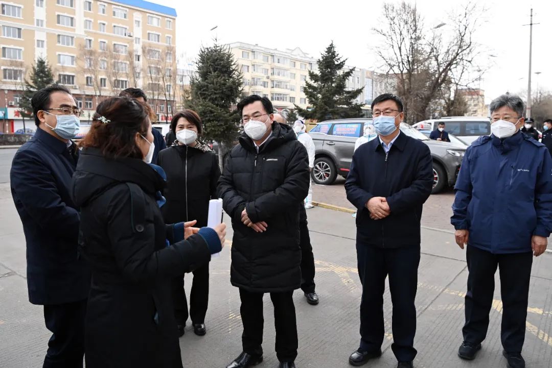 胡昌升到佳木斯市汤原县封控小区检查防疫措施落实情况。