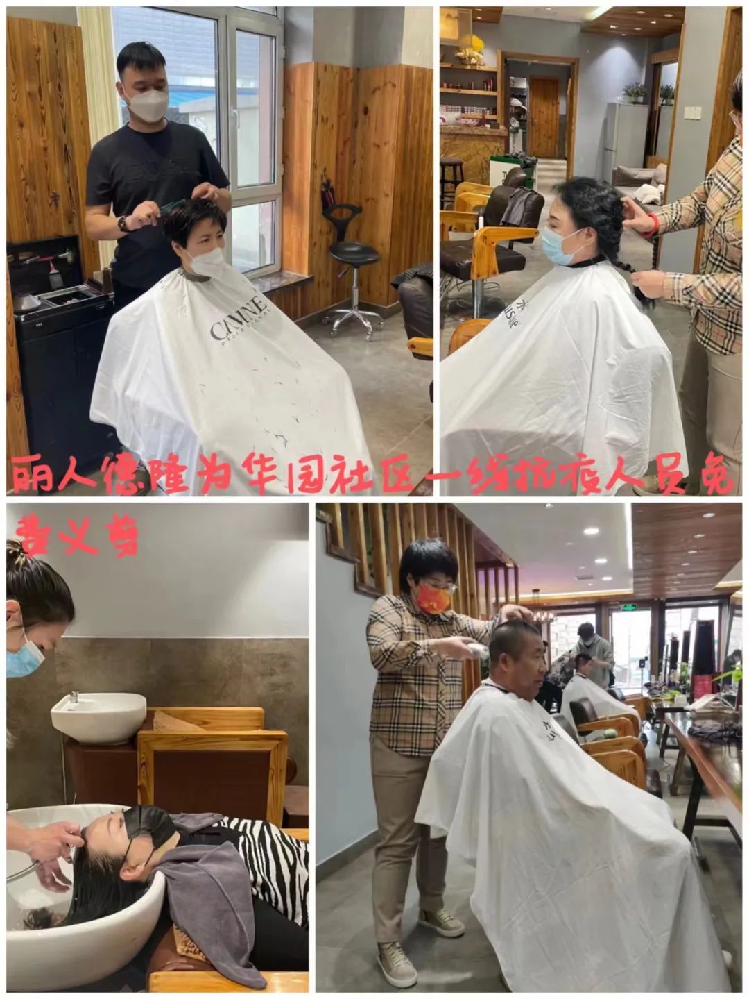4月8日,丽人德隆美发店为华园社区工作人员送温暖,提供免费理发服务。美发店负责人表示,无论是在疫情防控期间还是为居民服务工作中,社区工作人员都是最辛苦的,能为抗疫一线人员做点力所能及的事是我们的骄傲。