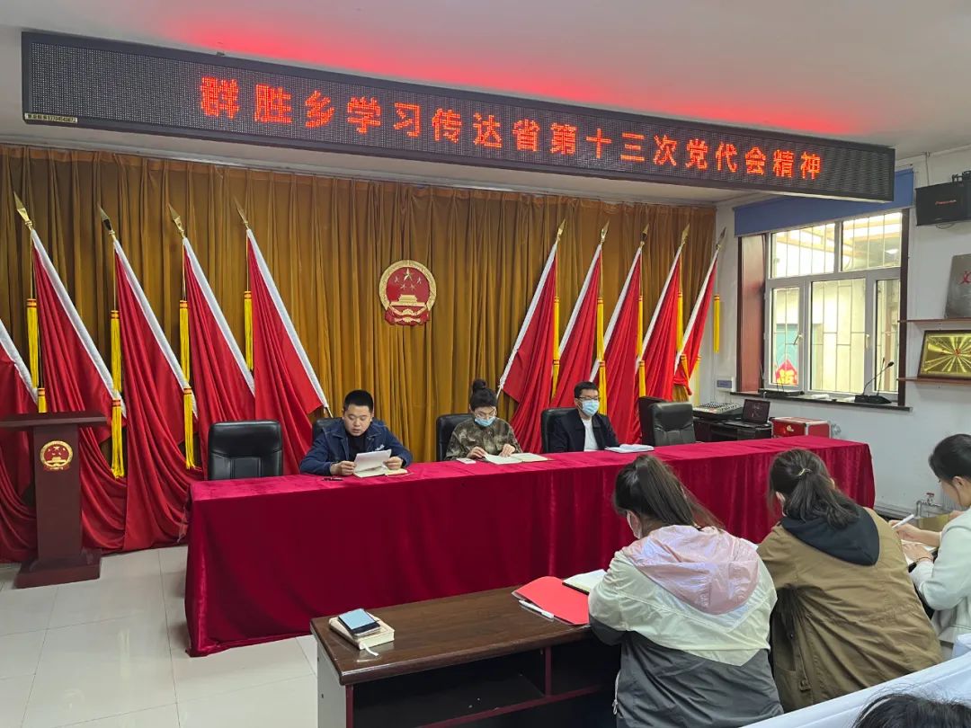 群胜乡将以省第十三次党代会精神为指引,坚持解放思想、振奋精神、笃行不怠,深入推进“能力作风建设”,全面推进乡村振兴,以实际行动迎接党的二十大胜利召开,为实现中华民族伟大复兴的中国梦贡献青春、智慧和力量。