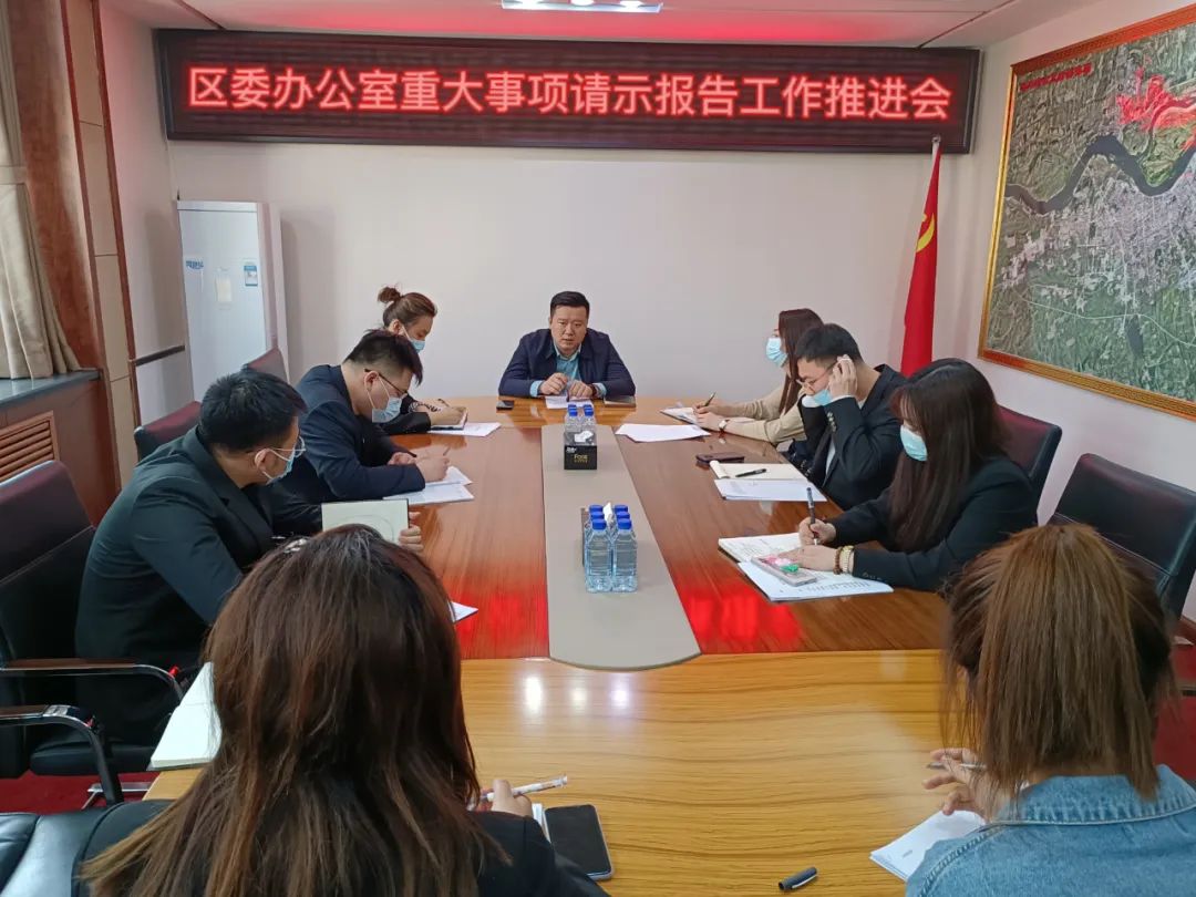 5月27日,区委办公室召开重大事项请示报告工作推进会议,传达学习《党委信息办理工作规定》《中共佳木斯市委关于进一步加强和规范重大事项请示报告工作的通知》等文件精神,总结上一阶段工作,查找分析问题短板,安排部署下步工作。