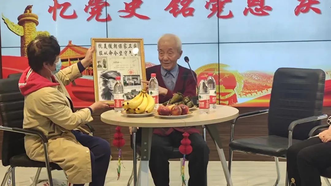 此活动邀请到抗美援朝老兵胡铁珊,老人用朴实的语言讲述了抗美援朝战争中那些惊心动魄的场景。“战争是残酷的,每天都有流血和牺牲。但是为了身后的祖国与人民,为了革命的胜利,我们不怕,也绝不能后退。”老人激动地说。一枚枚勋章,一件件实物,无不记载着老人当兵以来的革命故事。“雄赳赳,气昂昂,跨过鸭绿江,保和平,卫祖国,就是保家乡。”当胡铁珊老人满怀激情地唱起歌曲《中国人民志愿军战歌》时,大家心潮澎湃、无比自豪。