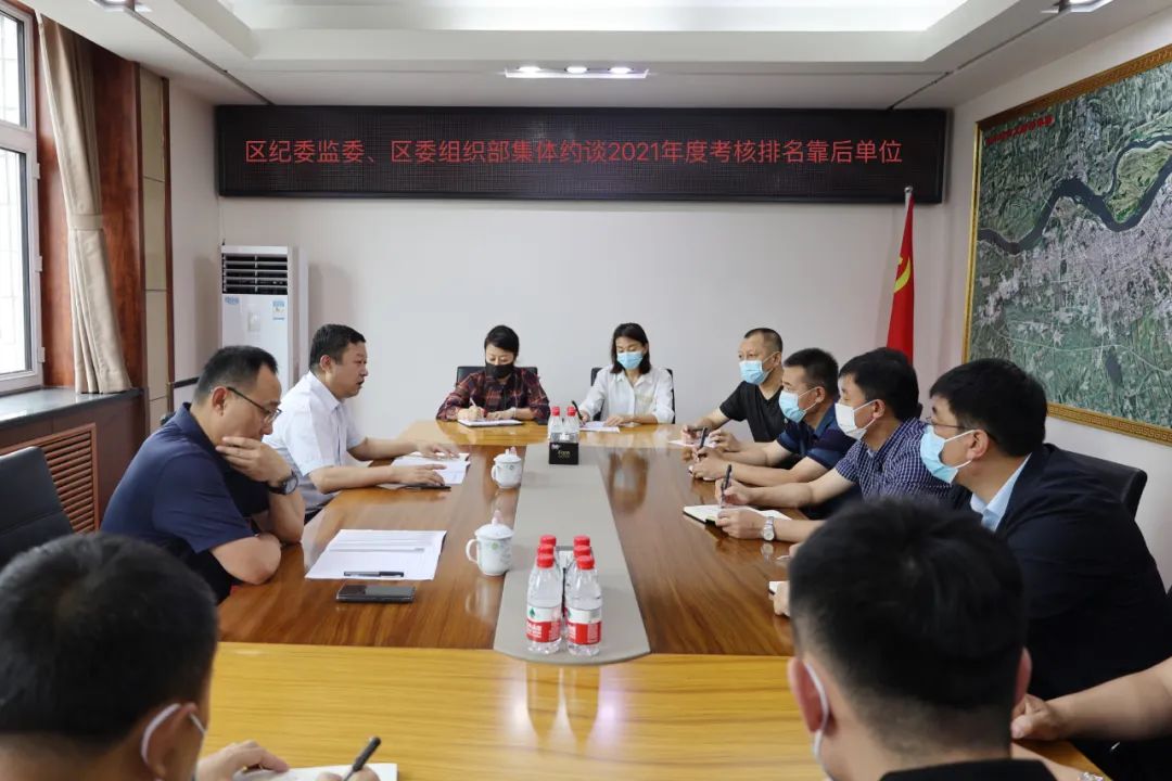 6月23日上午,根据区委主要领导指示要求,区纪委监委、区委组织部集体约谈2021年度政治生态建设成效考核、领导班子及领导干部综合绩效考评排名靠后的单位。区委常委、纪委书记、监委主任王胜芝,区委常委、组织部部长、统战部部长关雨龙参加会议并讲话。
