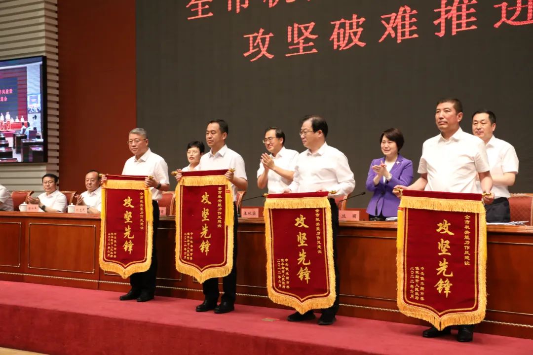 郊区在全市机关能力作风建设攻坚破难暨项目观摩活动中被授予“攻坚先锋”旗帜。市人大常委会副主任、区委书记冯甲伟代表我区作了题为《高起点谋划 高标准建设 聚项目之力助推经济高质量发展》的典型发言。