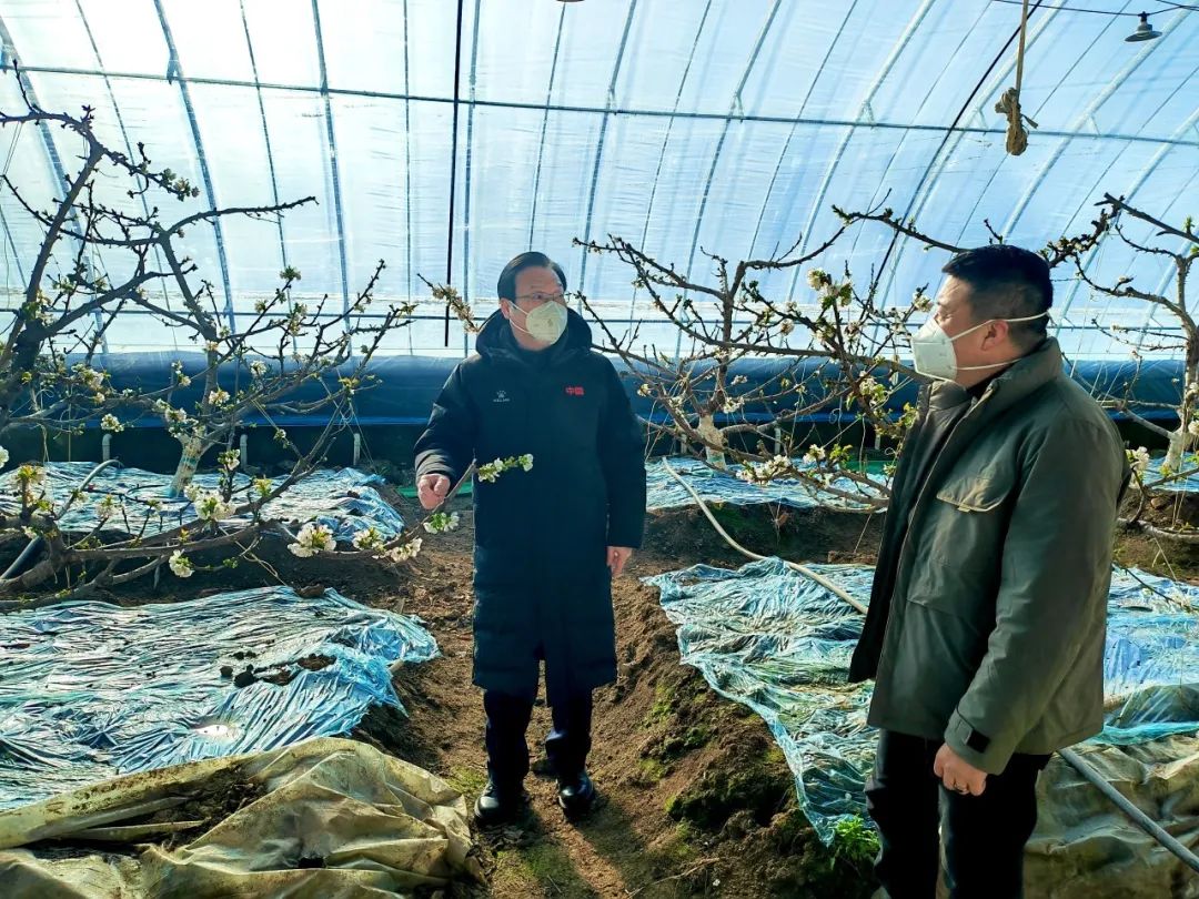 长发镇新河草莓采摘园内第一茬草莓已经成熟上市,第二茬草莓开花受粉,暖棚内蜂舞花香,一派欣欣向荣;沿江镇大樱桃种植基地白色的樱花压枝竞放。冯甲伟十分关心严寒天气下温室大棚生产,先后来到两地调研了解特色农业种植、棚室经济发展及严寒天气应对等情况。他强调,本轮严寒天气温度降幅大、持续时间长,要科学高效防范应对严寒天气,有针对性地做好温室大棚御寒增温工作,并注重积累经验,确保极端天气下的棚室生产安全。要大力发展特色农业、棚室经济,进一步树立市场观念,加大宣传推广力度,广泛运用线上线下、休闲采摘等方式拓宽销售渠道,推动“棚室经济”规模化、品牌化、产业化发展。要用好新型材料和现代科技,引进更加节能高效的棚室技术和发展模式,进一步提高生产效益,让农民更多分享产业增值收益,促进农民收入持续增长。冯甲伟同时强调,要坚持党建引领乡村振兴,围绕“五大振兴”科学编制乡村振兴三年规划,在农业产业发展、基础设施建设、乡风文明治理等工作上见真章、出实效,加快推进农业农村现代化发展步伐。
