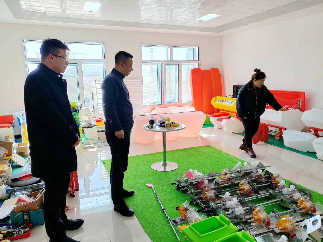 李遥首先到新华村鑫金源环保滚塑料科技有限公司进行调研,走进产品展示厅,查看产品种类、生产过程。了解企业在生产设计、原材料价钱以及运输成本方面上的优势和困难。他指出,企业发展壮大要有创新意识,产品要保证质量,通过专业化的产品及服务占领市场做大做强。