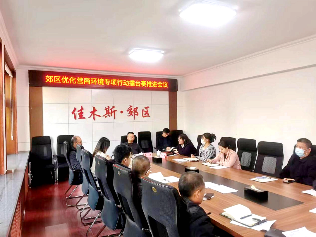 会议传达了全市优化营商环境大会的会议精神及工作要求,并详细解读了《佳木斯市优化营商环境专项行动擂台赛活动方案》,逐一梳理了任务指标,结合郊区实际对标对表,找差距、补不足,积极推动郊区优化营商环境专项行动落地见效。