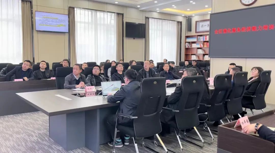 按照全区深化能力作风建设“项目提效月”活动工作要求和区委关于开展强化服务经济能力培训的相关部署,4月19日,区发展改革工信局举办全区强化服务经济能力培训会议,会议由区政府党组成员范秋林主持,区委常委、政府副区长李遥出席会议并讲话,会议集体学习了经济发展基础知识,听取了各有关单位的汇报,并对下一步经济工作作出安排部署。