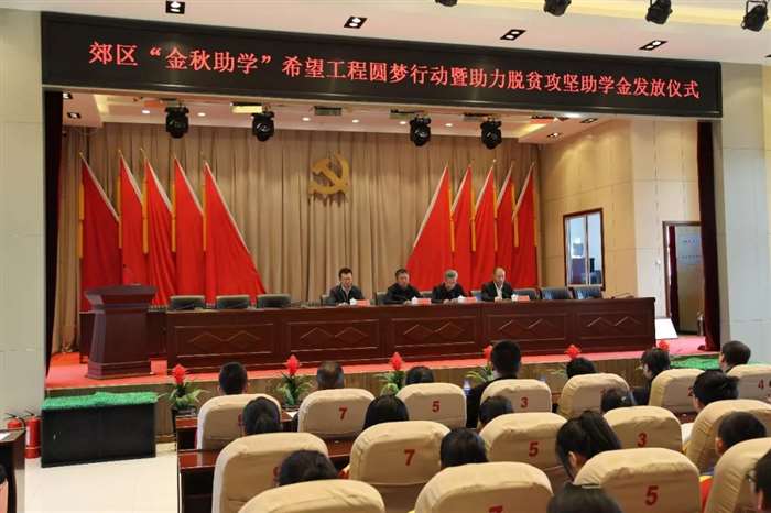 上午,郊区“金秋助学”希望工程圆梦行动暨助力脱贫攻坚助学金发放仪式顺利举行。仪式上,与会领导为受资助的学生代表发放了助学金,爱心企业代表和受助学生代表作了发言。2019年金秋助学活动自开展以来,共青团区委积极组织动员全区各级党政机关及企事业单位干部职工、社会各界爱心人士,积极向团市委和省青年发展基金会争取资金,募集善款365,908元,资助贫困学生102名,实现全区建档立卡贫困家庭初高中学生全覆盖,为调动社会力量、推动社会扶贫、凝聚脱贫攻坚合力起到了积极促进作用。