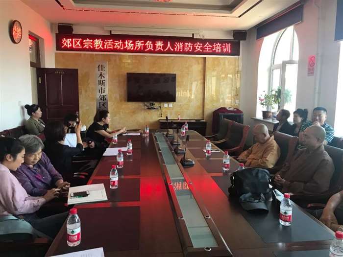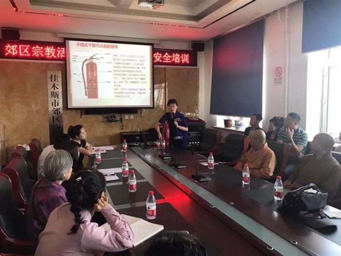 佳木斯市消防救援支队宣讲员就扑救初期火灾、火场疏散逃生与自救、灭火器的分类、用途、使用方法以及电气防火知识、日常隐患排查、建筑防火、消防安全职责等消防知识进行详细讲解。并从“落实消防安全主体责任,加强消防安全自检自查、强化消防安全培训”等方面提出明确要求。宗教活动场所要加强消防安全管理,落实巡查制度,及时消除火灾隐患,确保节日期间消防安全稳定。