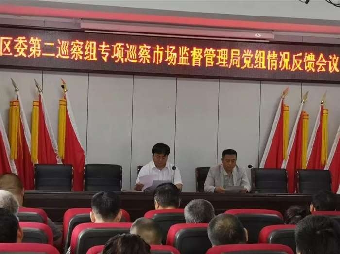 近日,区委第二巡察组对郊区市场监督管理局巡察情况反馈会在市监局六楼会议室召开。区委第二巡察组全体成员、区市场监督管理局领导班子、局下属各股室、各所以及机关全体干部参加会议。