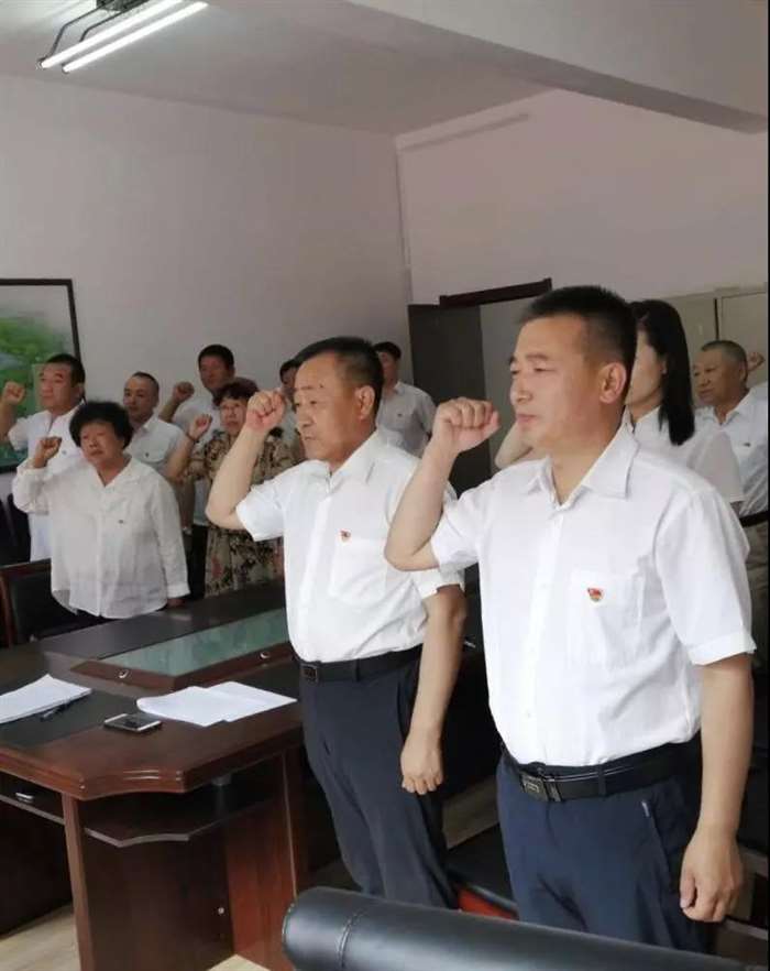 开展了面向党旗重温入党誓词活动。全体党员佩戴党员徽章、面向鲜红的党旗,全体党员接受了一次心灵的洗礼,进一步坚定了理想信念。