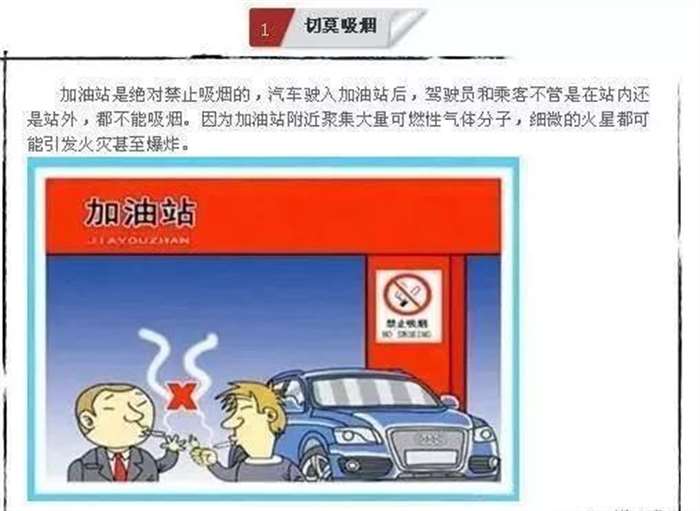 1、不在加油站区域吸烟、打手机。
