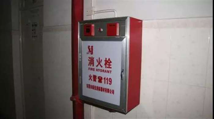 4、消防栓。一般放置于走廊或厅堂等公共的共享空间中,有醒目的标注(写明”消火栓”),附近配有消防水带,同时,它的前方不能设置障碍物,避免影响消火栓门的开启。