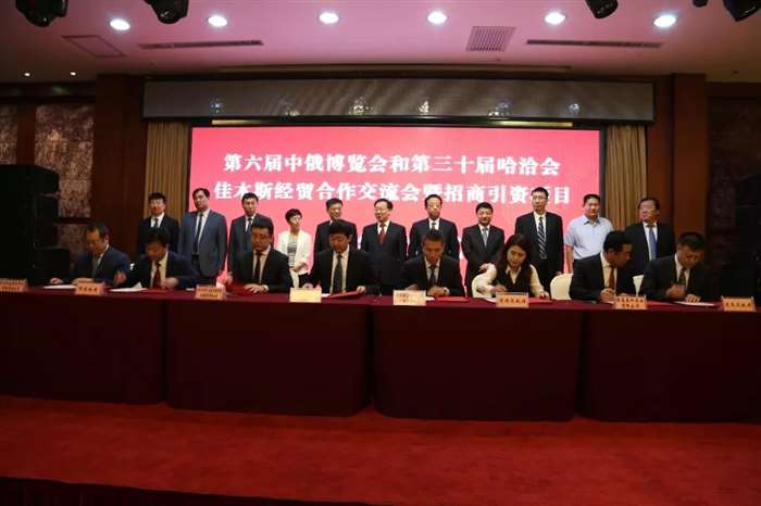 6月15日,第六届中俄博览会和第三十届哈洽会在哈尔滨国际会展中心盛装启幕。区领导冯甲伟、郑昌辉、杨志国出席展会并参加佳木斯经贸合作交流会暨招商引资项目签约仪式。 本届中俄博览会以“中俄地方合作:机遇、潜力与未来”为主题,与同期举办的哈尔滨国际经济贸易洽谈会展览总面积达8.6万平方米,共有34个国家和地区的1360家企业报名参展,展览内容突出现代农业、装备制造、航空航天、矿产合作、跨境电商等中俄重点合作项目和成果。我区企业佳天国际精选独具俄罗斯风情的系列产品在醒目位置参展,吸引到场的中外宾客前来咨询、洽谈。 徐建国、邵国强、邱士林、宫秀丽、朱逸廷等市领导参观展馆,并先后来到佳天国际展位了解企业参展情况。 项目签约 15日晚,来自广东、北京、浙江等地的企业家相聚在哈尔滨北大荒国际饭店会议中心,参加此间举办的佳木斯经贸合作交流会暨招商引资项目签约仪式。共话友谊、共商合作、共谋发展。在签约仪式上,政府副区长杨志国代表我区与北京极地测控科技有限责任公司签订产业项目合作协议,签约额1.2亿元。 领导洽谈 在哈尔滨参加展会期间,区委书记冯甲伟先后会见一重集团(黑龙江)农业机械发展有限公司、北京极地测控科技有限责任公司负责人,分别就生物氧化法秸秆制浆项目;拟建佳木斯中心服务基地项目;投资建设佳木斯航天测控通信园区等项目进行洽谈。 项目签约 展会期间,我区还与北京溢祥石墨集团就投资约1亿元建设鳞片石墨生产项目签订合作协议。该项目将建设5-6条鳞片石墨恢复生产线,用于耐火材料生产,预计利税520万元人民币,可带动就业50人。