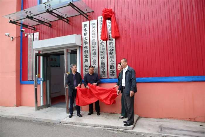 会议结束后,参会领导和郊区新联会代表人士在佳木斯电商产业园区一楼门前举行了郊区新联会揭幕仪式,并与全体会员参观电商园区。